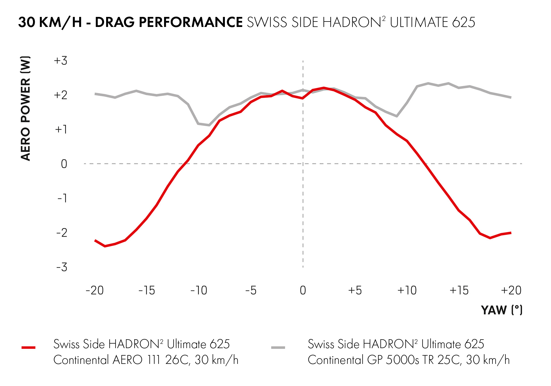 While our HADRON² Ultimate 625 wheels already have a strong aerodynamic performance, it is at yaw (cross-wind) angles greater than 10° that the wheel and tire system with the AERO 111 tire shine.